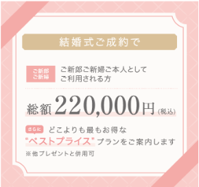 ご新郎ご新婦には総額220,000円優待