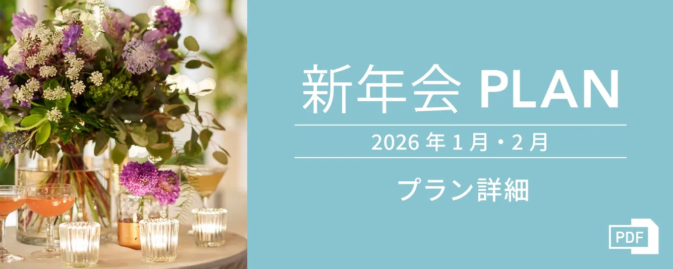 白を基調としたナチュラルで開放感あふれるパーティー会場。木漏れ日をイメージした広々としたバンケット内だけでなく、会場と一体化したテラスでも心地よい時間をお愉しみいただけます。また、3面スクリーンを使用したプロジェクションマッピングなど多彩な演出も可能です。プライベートなパーティーからビジネスシーンまで幅広くご利用いただけます。