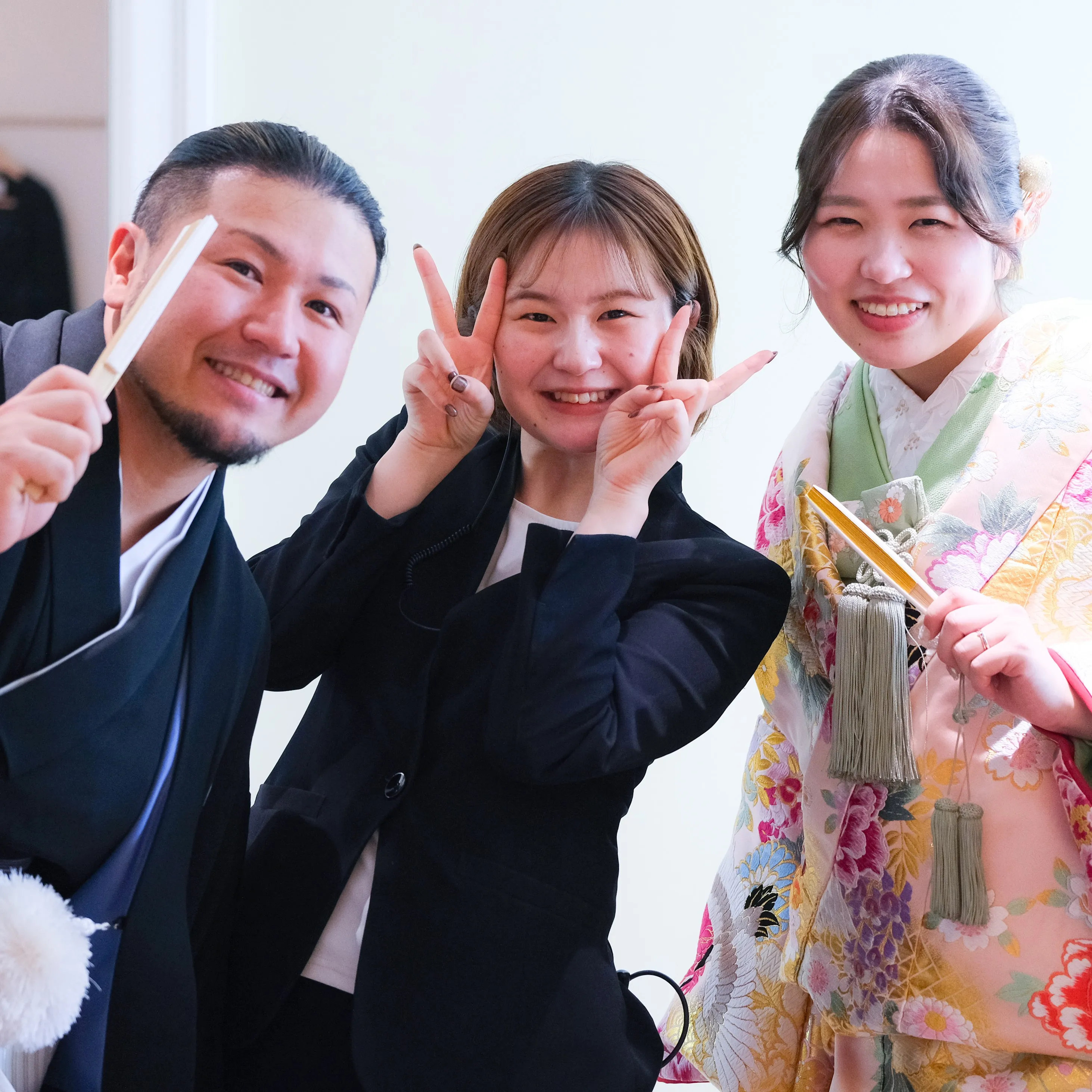 雨予報でしたが、アフターセレモニーまでもってくれて、さらに寒くなくてほんとに良かったです。そして聞いていたとおりあっという間!!新郎がいつものように笑わせてくれたので、ずっと2人でニコニコしてたような感じます。そしてそれがみんなに伝わったのかすごくいい雰囲気でした。そしてなにより、沢山の方が集まってくださり感謝しかないです。 クイズ大会は思った以上に盛り上がり、1番手間がかかった札作り頑張ってよかったです。ドレスも着物もたくさん試着して私達らしいものに出会えて、似合ってるとたくさん褒めてもらい嬉しかったです。波乱もありましたが、山田さんの笑顔に支えられました。吹田さんとの打ち合わせは楽しくて、当日のBGMは素晴らしいものになりました。たくさんのスタッフさんの細やかな心遣いが嬉しかったです。ありがとうございます。Peekで挙げることができてよかったです。