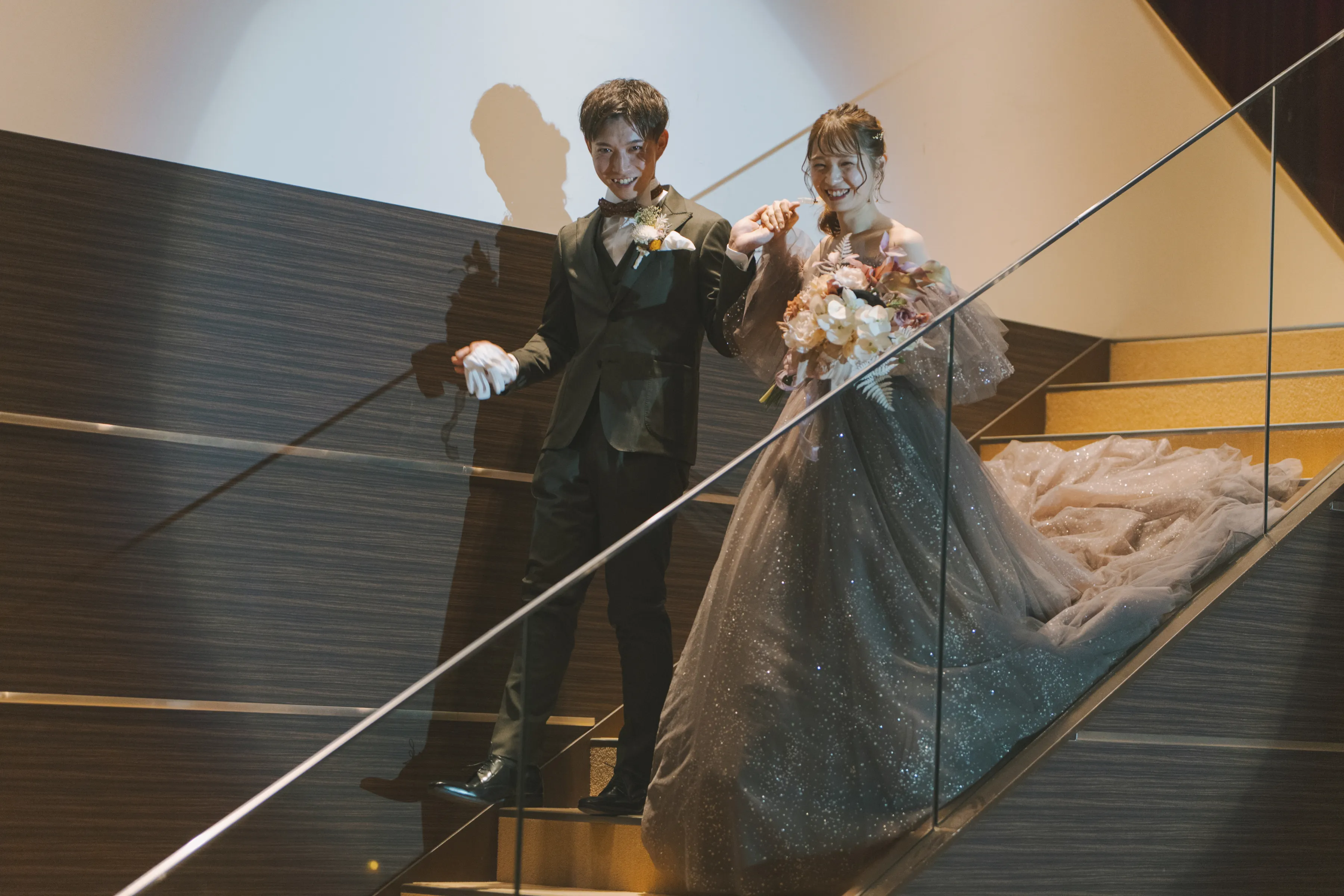最初はウエディングドレスとカラードレスの2着を予定していましたが、和装を着たい気持ちが捨てきれず変更して頂き、当日は両家にも内緒で披露宴で和装入場をしました。式が終わってからも、和装を着てくれて嬉しかったと両家両親喜んでくれて、思い出に残るプチサプライズになりました? 名前ビンゴ大会では、新郎新婦のゲスト全員で参加したり、新郎新婦もゲストの方々の近くまで行く機会を山田さんに提案して頂いたおかげで、会場にいる皆さんと一緒に楽しい時間を過ごす事ができました!ありがとうございます?