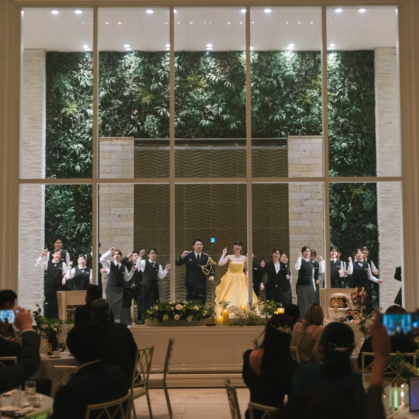 6月挙式だったので雨は覚悟していましたが、見事に雨でした!「雨の日の結婚式はふたりに幸福をもたらす」という言葉がありますが、まさにその通りで、挙式後のアフターセレモニーをチャペル内で行えたり、チャペル内での集合写真をとれたりとチャペルで特別な思い出ができました!全天候型の披露宴会場も素晴らしく、曇天を感じさせない自然光がとても美しかったです!ギリギリで担当プロデューサーにお願いしてオールキャストフィナーレはキャストの方にも協力いただき、オールキャストでダンスを踊り、披露宴を結ぶことができたのもとても良かったです!!担当プロデューサーさんをはじめとするザ・ピークプレミアムテラスの方々は笑顔溢れ、対応の細やかな素晴らしい人ばかりでした!ここで2人の結婚式を行えて良かったと思いました!