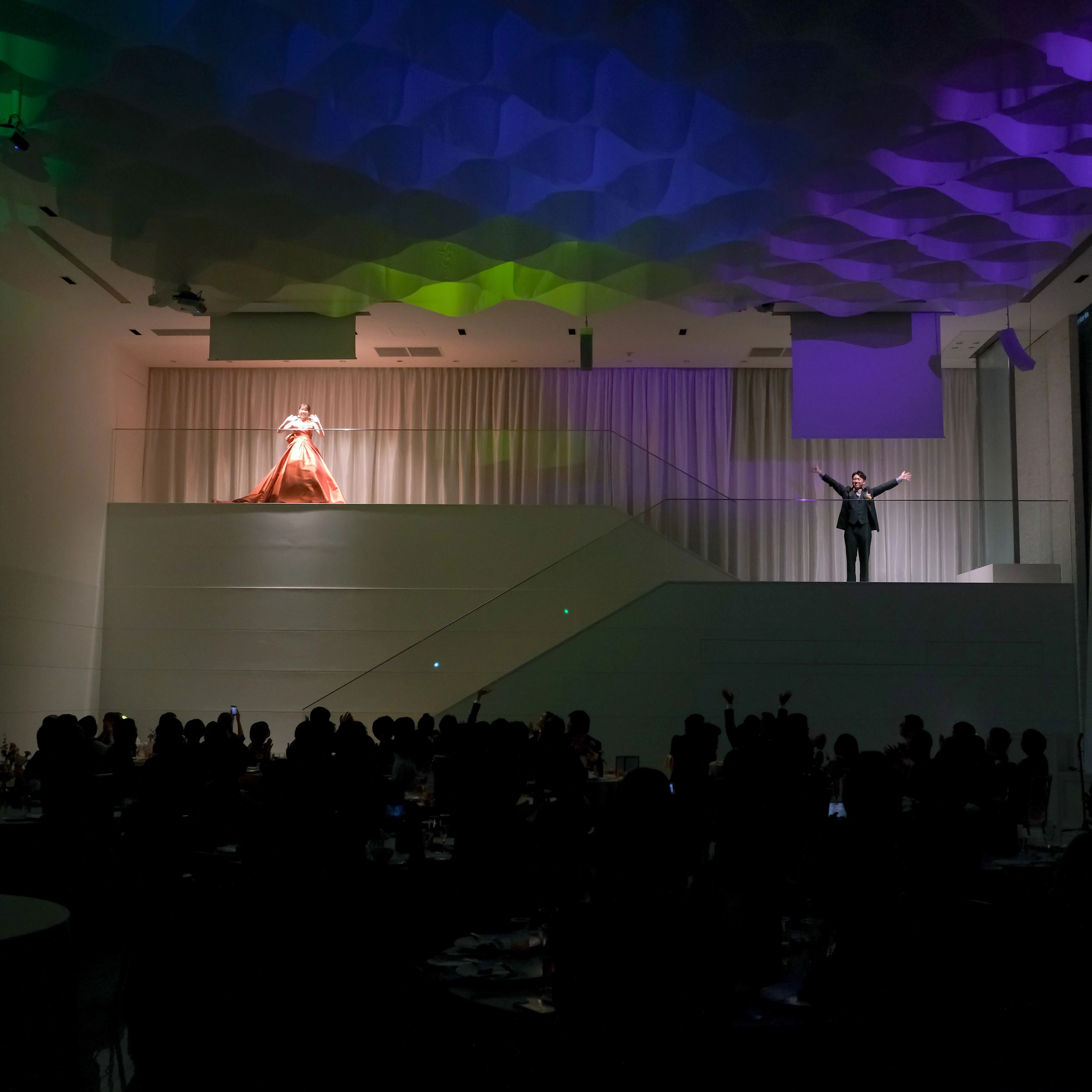 お色直しの登場では、大型の縦型スクリーンからの登場はブライダルフェアで見た時から絶対にしたいという思いがあり、