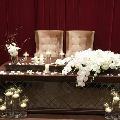 会場自体に色があるので、装花は白の花をメインに使い