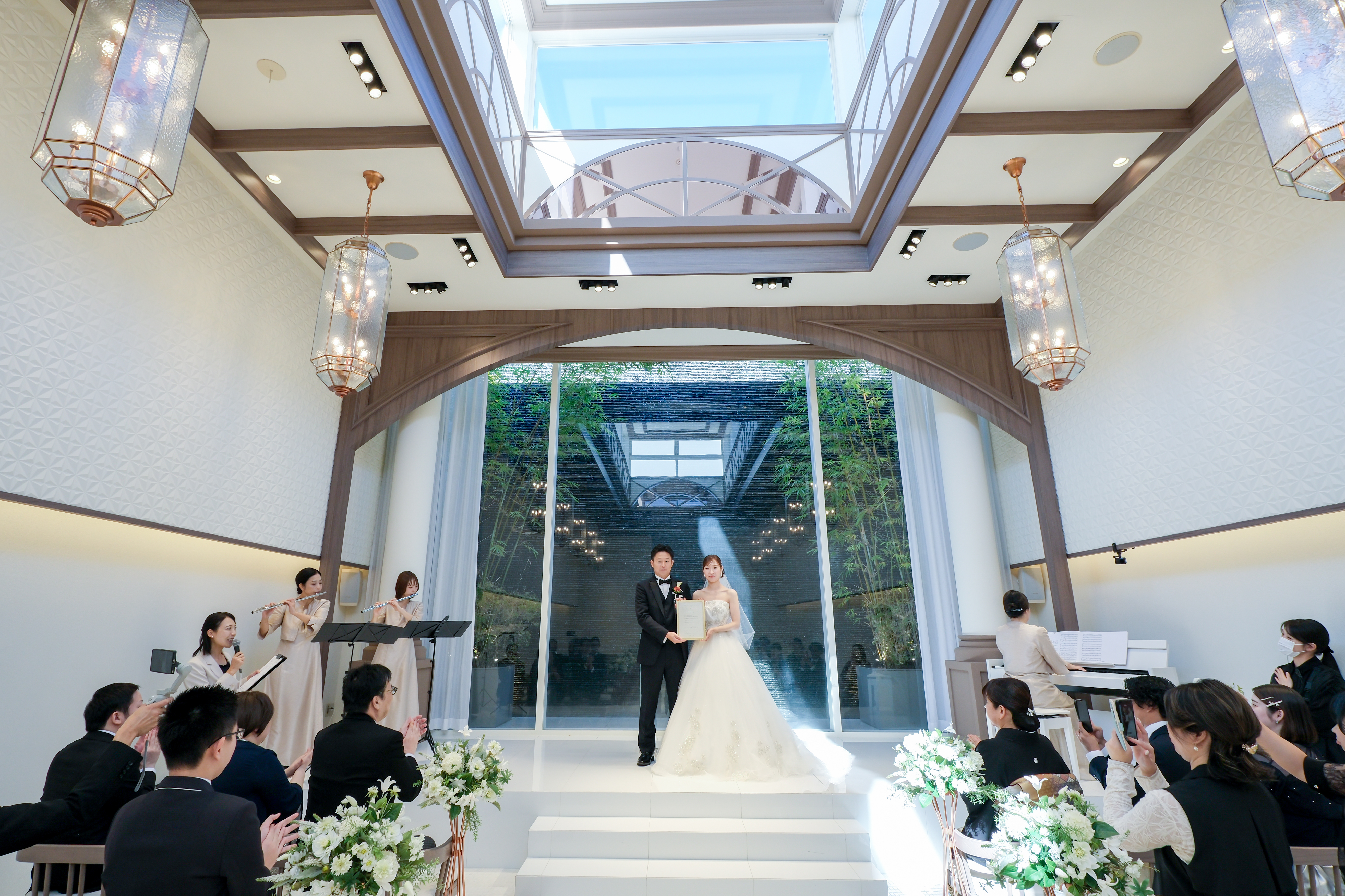 挙式は自然光が天窓から降り注ぎ、ご家族だけだからこそアットホームに和やかに進んでまりました。
