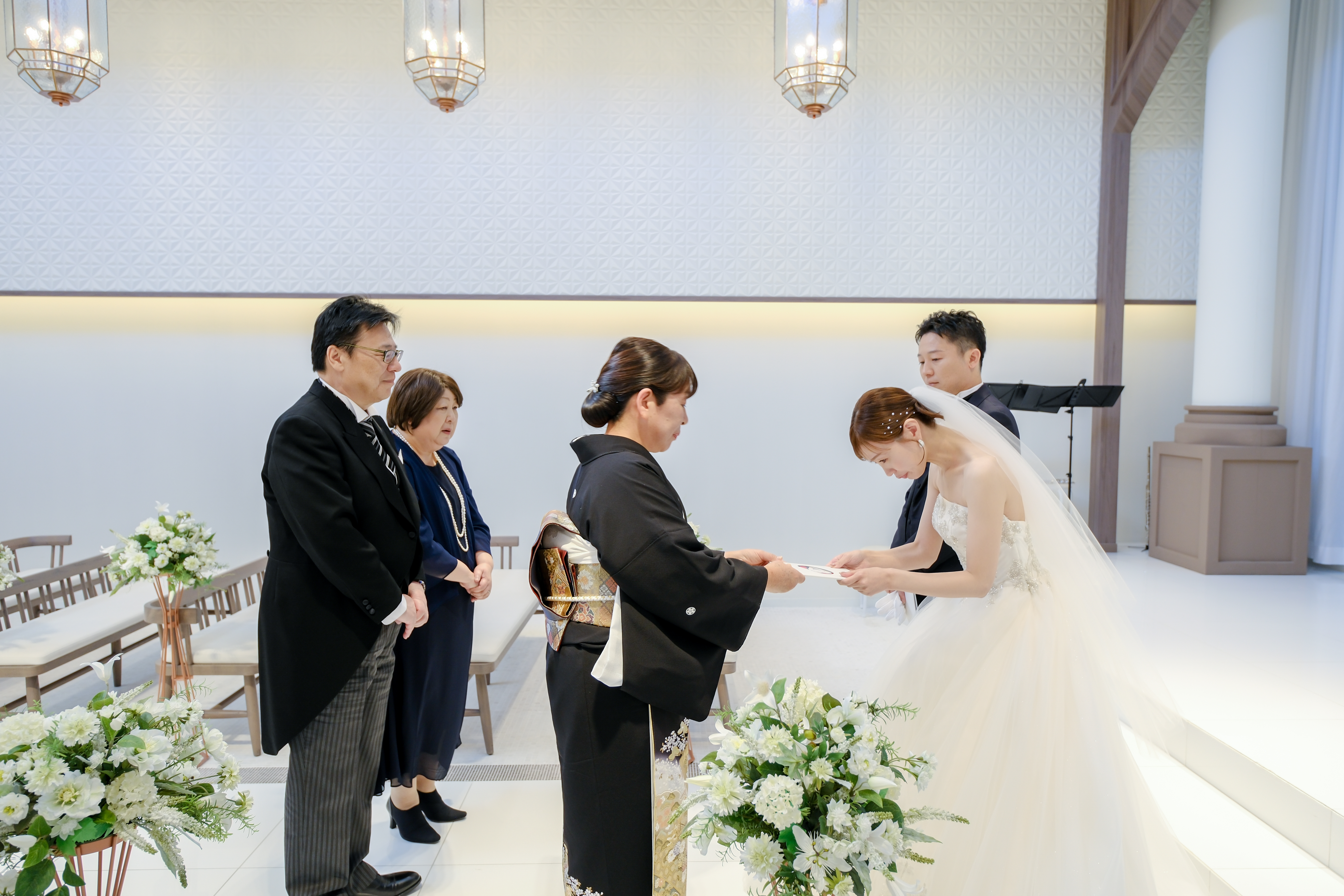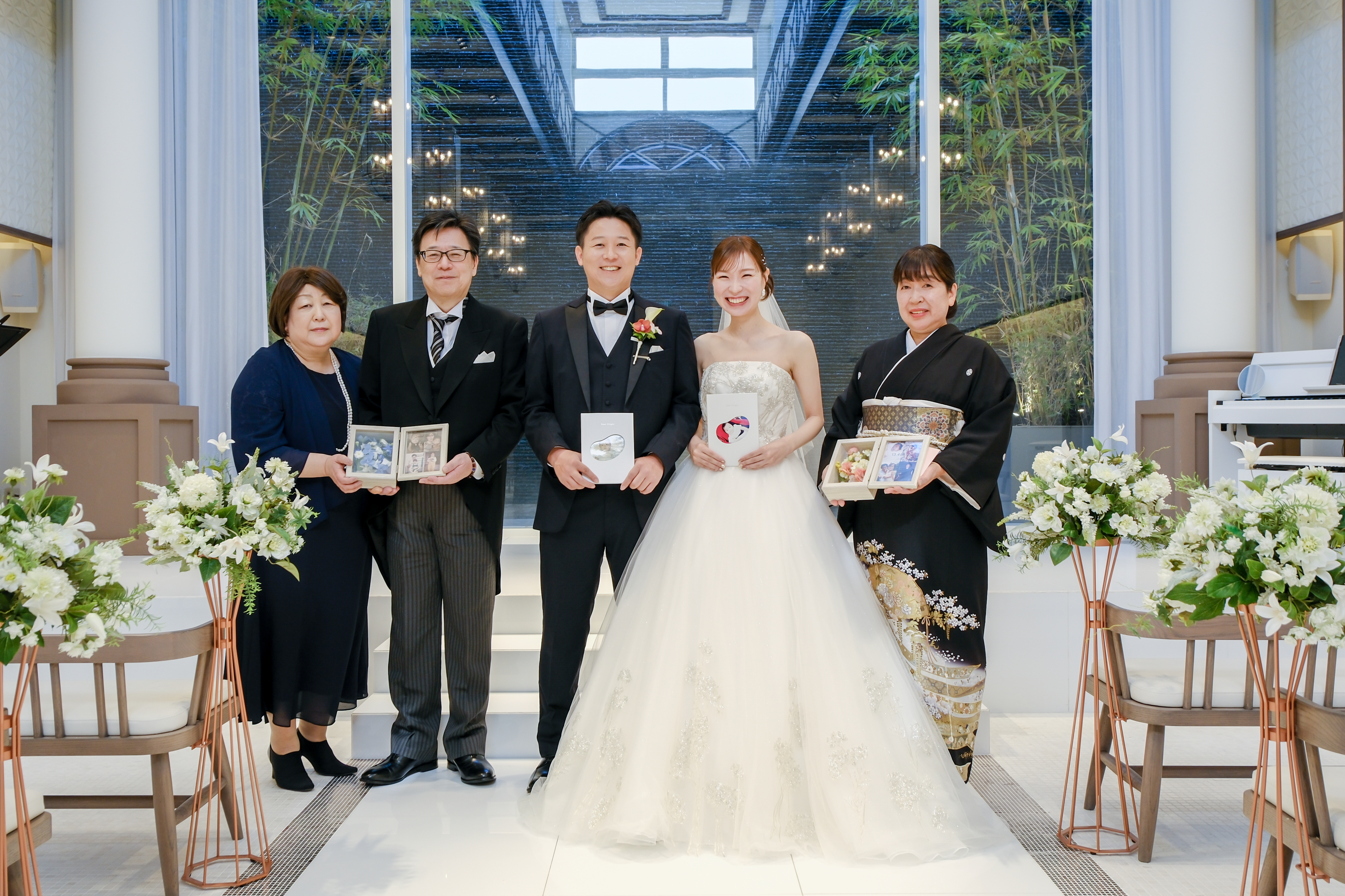 チャペルでの撮影時間が結び、親御様へ晴れ姿をご覧いただくペアレントタイム。