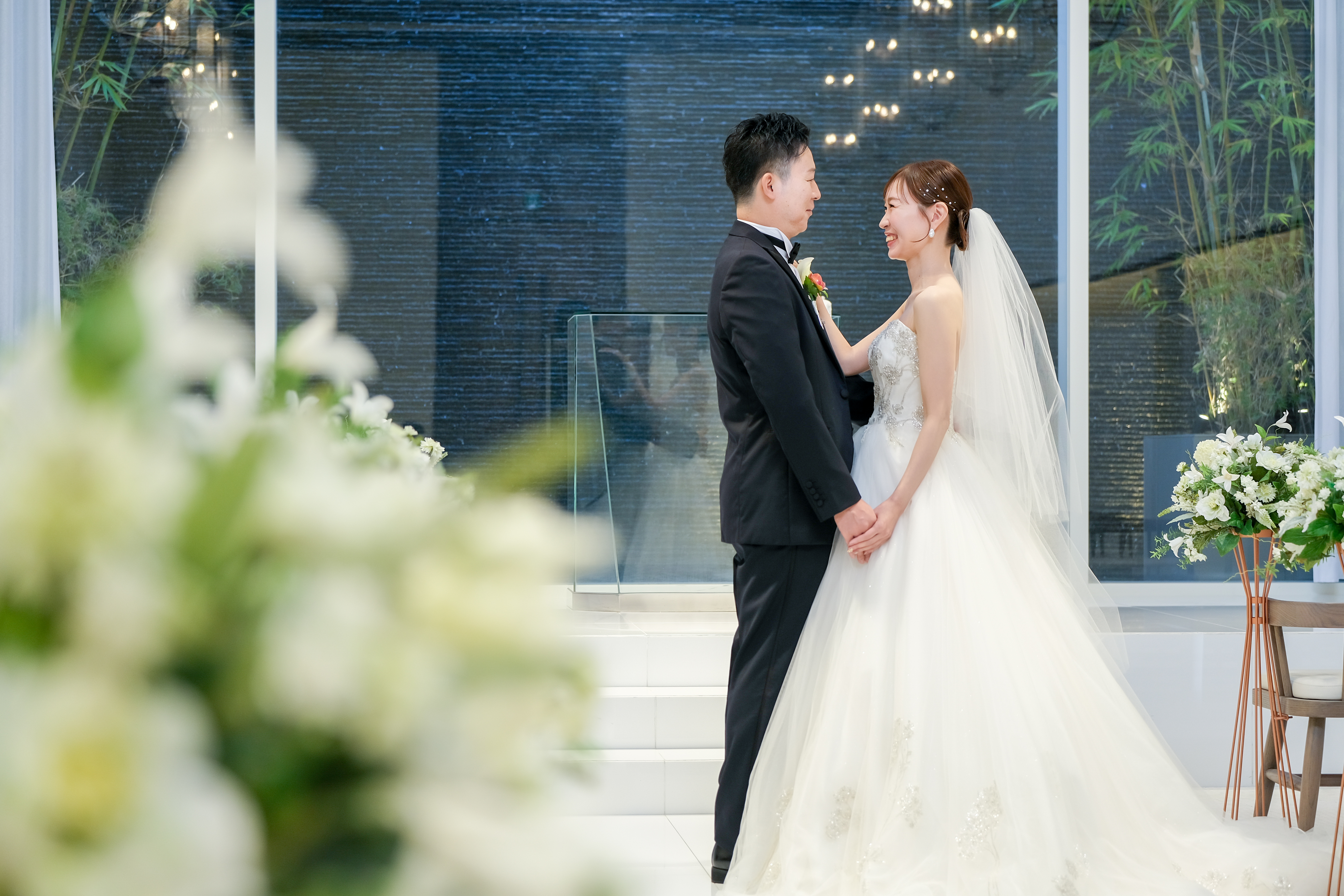 とても物腰柔らかく明るく笑顔が素敵な頼れる新郎様、常に周りの人への気遣いをされて優しさでいっぱいの新婦様。指輪をご購入されてから「ご結婚式を挙げられたら・・・」そんな新婦様の想いを叶えるべく会場のご見学にお越しくださいました。