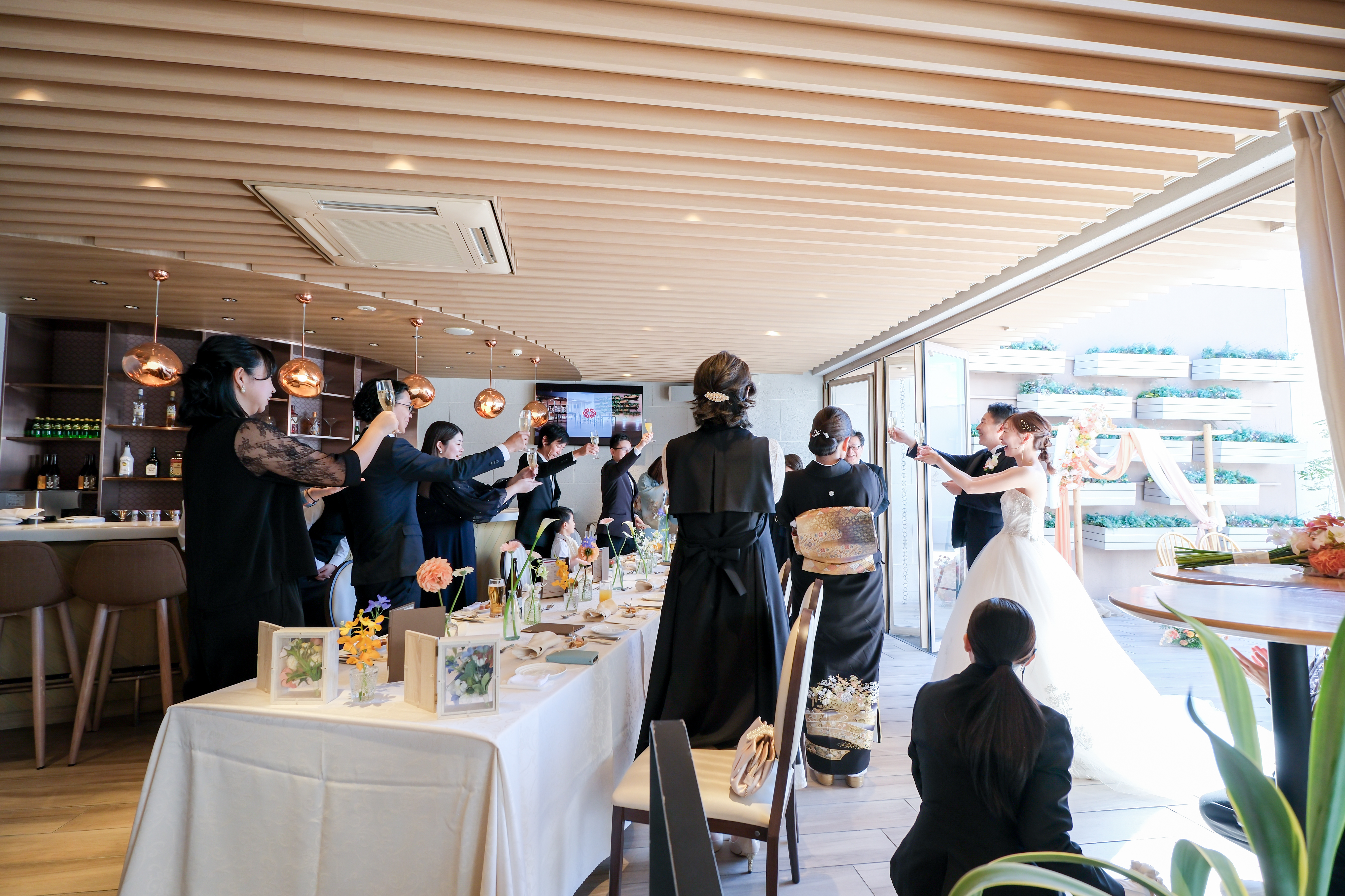 挙式とアットホームウエディングにぴったりのペントハウスでのお食事タイム。