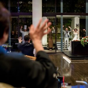 披露宴の結びに、ご新郎ご新婦様を中心に、
