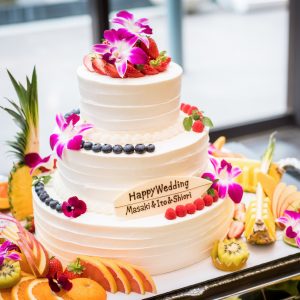 ウエディングケーキについても、「南国リゾートっぽい雰囲気を出せたら」というご希望があり、