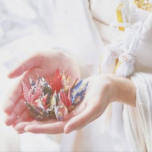 そんな「鶴」を折って、挙式退場時やアフターセレモニーのときに行うのが「折り鶴シャワー」。