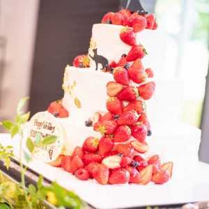 おふたりの好きな猫のケーキトッパーをお持ちいただき