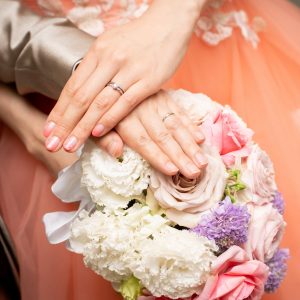 披露宴の後、当日のブーケと共におふたりの手元を写すショット📸✨