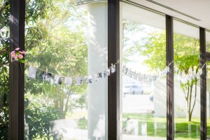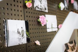 ラウンジにはおふたりが撮影された前撮り写真がモノクロでお洒落に展示されていました
