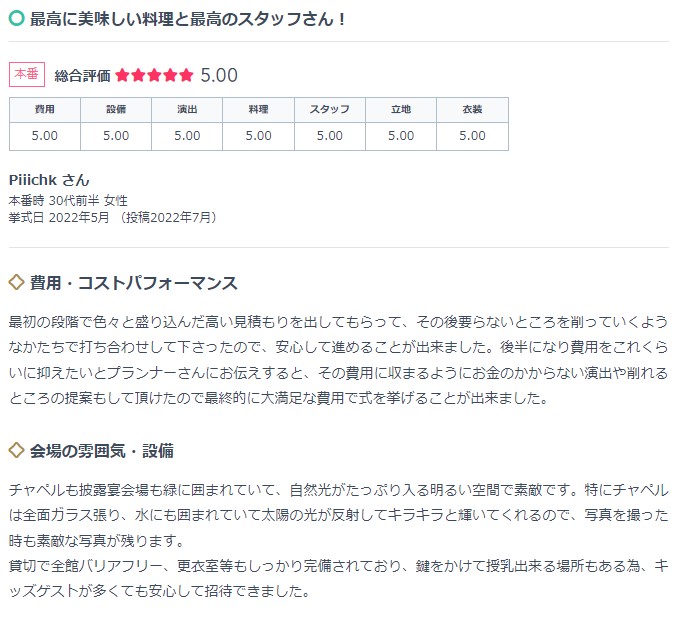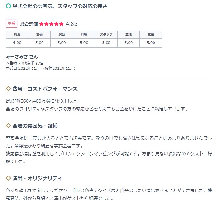 この度、大手口コミサイト「みんなのウエディング」の年間ランキングが発表され、