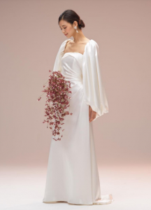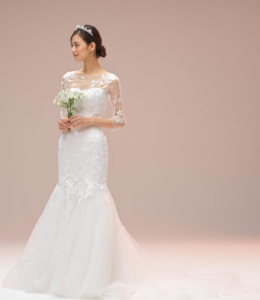 マーメイドドレスは着脱可能な七分袖のインナーボレロが