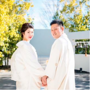 前撮りで和装の振り返りショットを撮ったお2人。