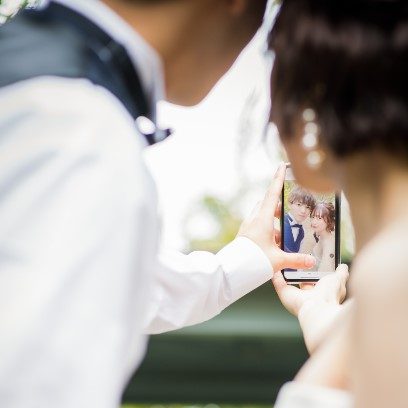 あれ?新郎新婦様が後ろ向き…??   と思ったら、おふたりは携帯で自撮り中📸✨ そんな様子...
