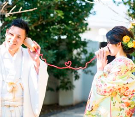 《糸電話》 前撮りアイテムの中でもおすすめのアイテムのひとつである、糸電話。 赤い糸でハートのマークを創っ...