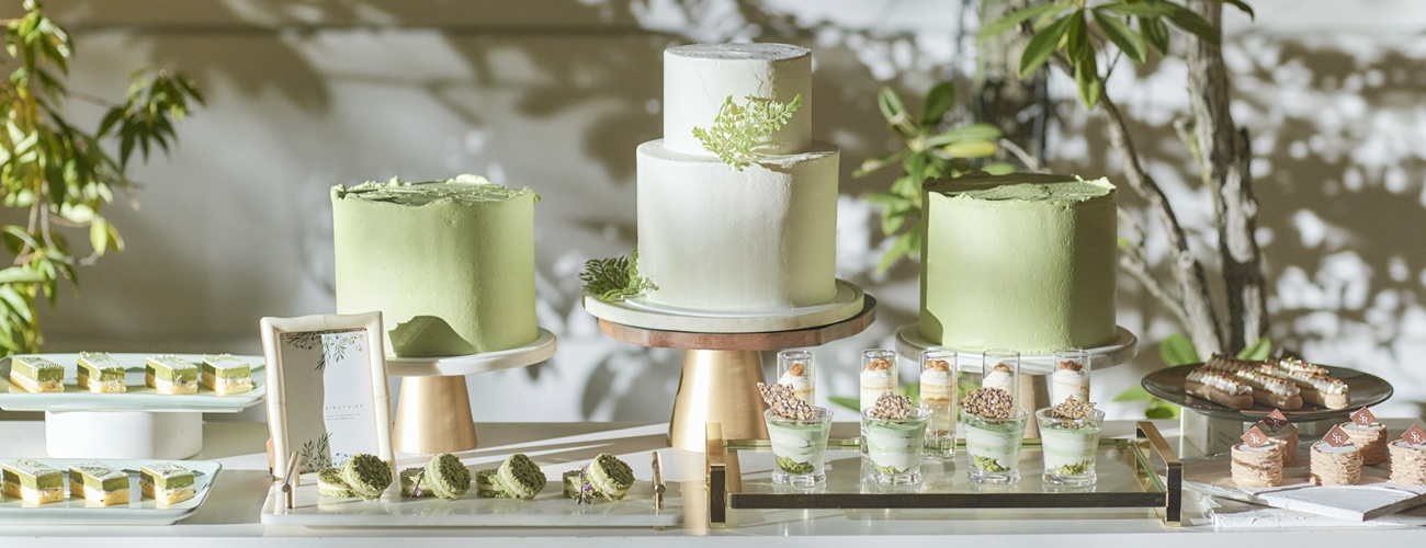 麗風つくば シーズンズテラスでは、オリジナルのウエディングケーキやデザート、そしてゲストへのうれしいサプライズとなるデザートブッフェをご用意しております。色とりどりのケーキ&スイーツが奏でる幸せな時間を、どうぞお愉しみください。