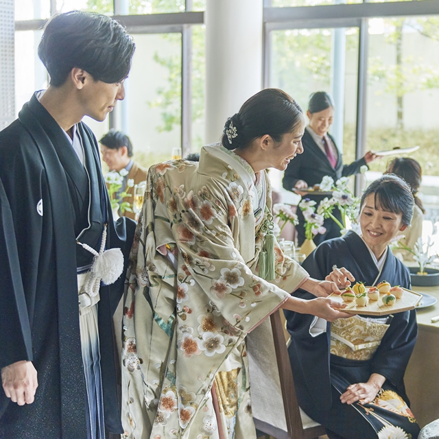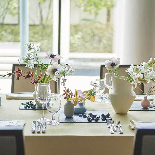 特別なパーティーに華を添えるのが、贅を凝らした料理の数々。宴会・パーティーの様々な趣旨に合わせて料理長が提案させていただくメニューは、味、見た目ともに幅広い年齢層の方にご好評いただいております。例えば、健康セミナーに合わせたヘルシーメニューや、テラスで振る舞うビュッフェスタイルのメニューなど、ご要望に合わせてフレキシブルに対応いたします。