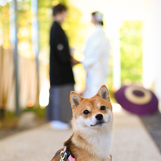 私達夫婦は共通の趣味があります。それは「ディズニー」です。パークに遊びに行くのはもちろん、DVDをみたり、グッズを集めたり、毎年ディズニーホテルに宿泊したりと、とにかくディズニーづくしな生活をする程です。なので自然と「結婚式はディズニーで挙げよう」と決まり、その目標に向けて2人で貯金をしていきました。そんなある日、これらの事を一変する出来事がありました!それは、杏(あんず・柴犬)を飼い始めたという事です。そこでふと、「ワンちゃんと結婚式を挙げられる所はないか?」と思い調べ始めると近場に"麗風"という式場があるという事を知り、ディズニーであげるという予定を切り捨てこちらで挙げることを決意しました。麗風は杏が参加できるだけでなく、「貸切」なのでディズニーで会場全体の統一感を出すことも可能でした。他にも理由をあげるとすれば、周りに麗風で挙式を挙げて良かったという方が多かった事も一つです。友人はもちろん、職場の上司から高校の時の担任まで。その人たちの話を聞いて「とても親切だった」「思い通りの挙式を挙げることができた」など、式を挙げる前から麗風がどんな式場なのかを知ることができたという事も決めた理由です。