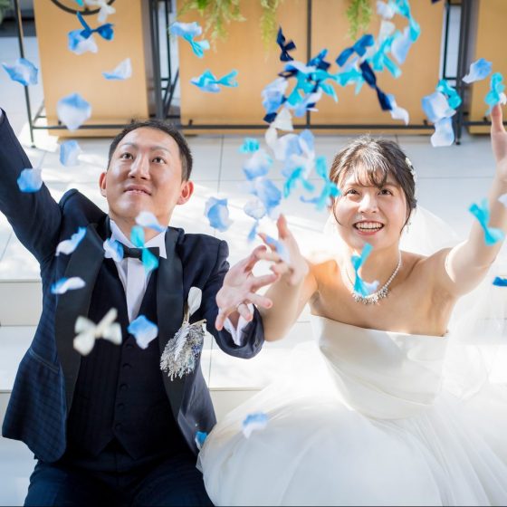 ①フラワーシャワーの演出の際、思い出のあるフラワーペタルを使ったこと