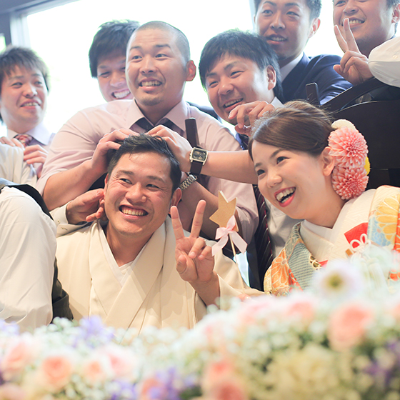 式が終わったあとに、友人や親族からたくさんの写真が届きました。すべてのゲストが笑顔で写っている写真ばかりで、楽しんでもらうことが出来たんだと実感しました。