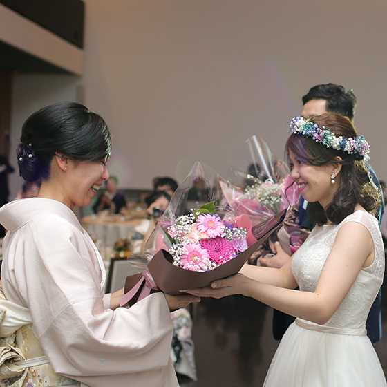 また、当日の着付けの方、メイクの方、カメラマンさん達、シェフ、フロアスタッフの方、当日関わっていただいた全てのスタッフの皆さんのおかげで、素晴らしい式になりました。ほんとにありがとうございます。