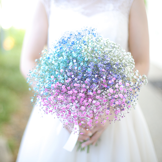 作れるものは作ろうと、不器用ながら作りました。1番力を入れたのが、色打掛の際持っていたボールブーケとフォトラウンドの時に使用した”HAPPY”オブジェです。