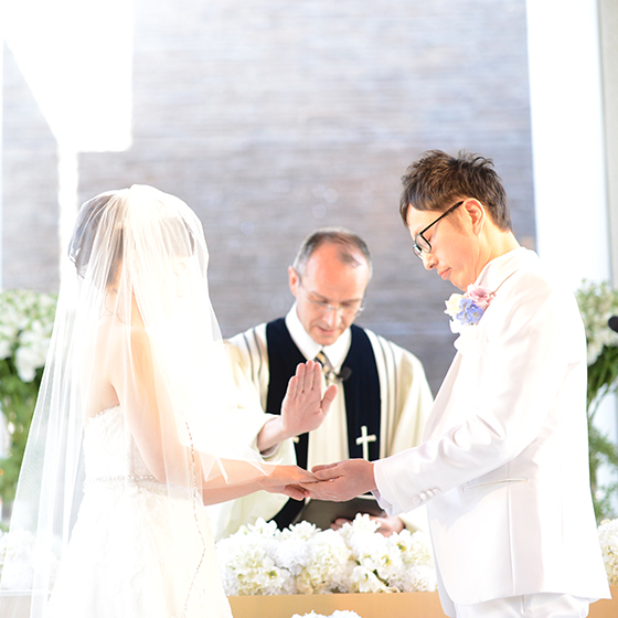 当日は晴天に恵まれ、チャペルには暖かい日の光が入りとても綺麗でした。
