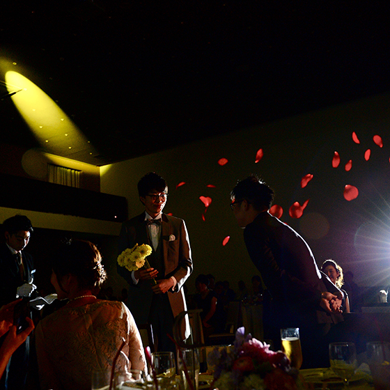 また会場全体が「貸切」であり、混雑することもなく、親族と友人で待合いフロアを分けることもでき、ゲストの方々がゆっくり過ごせると思いました。