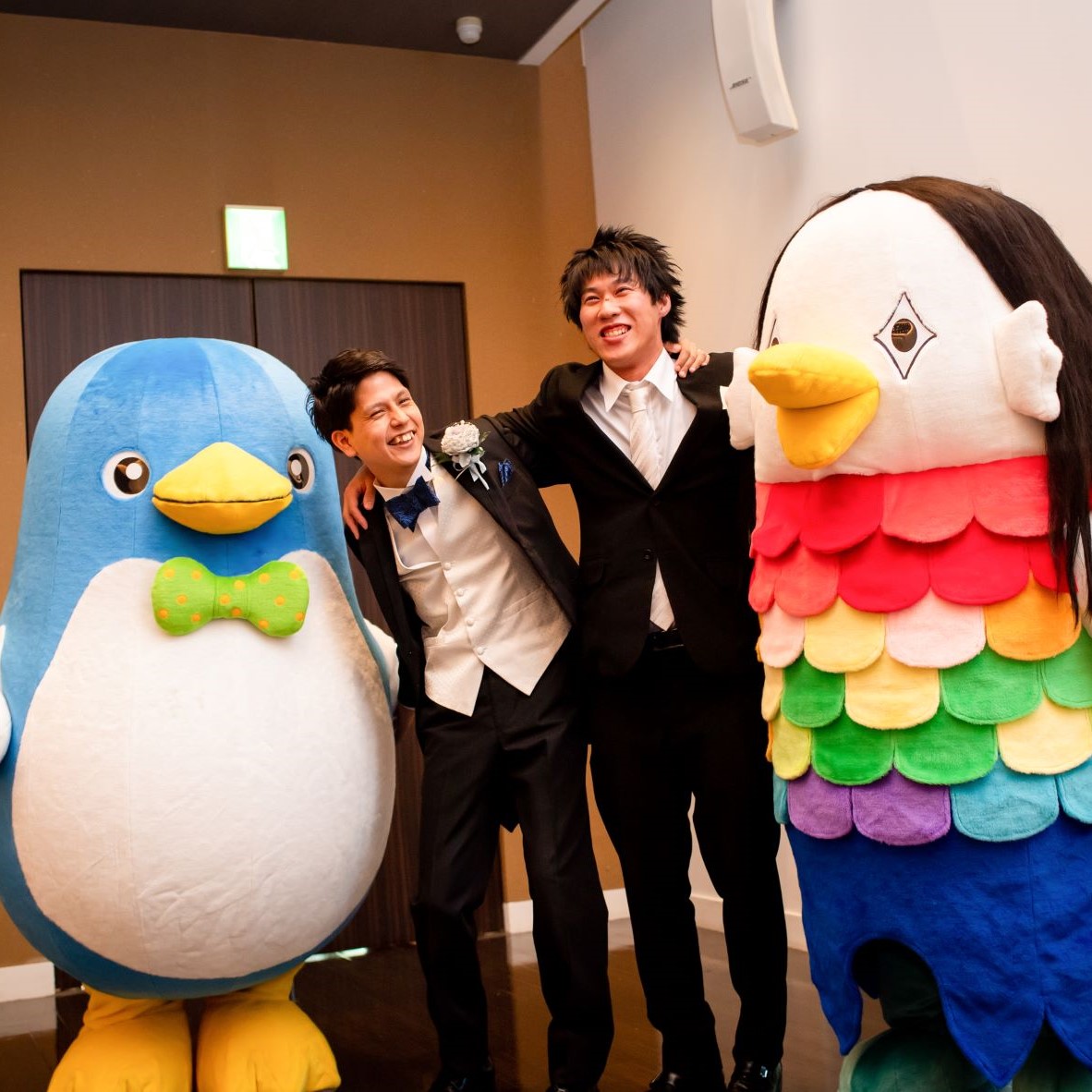 アマビエと(なぜか)ペンギンの着ぐるみを着た同期と登場!