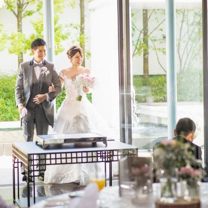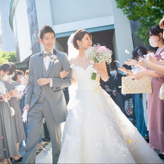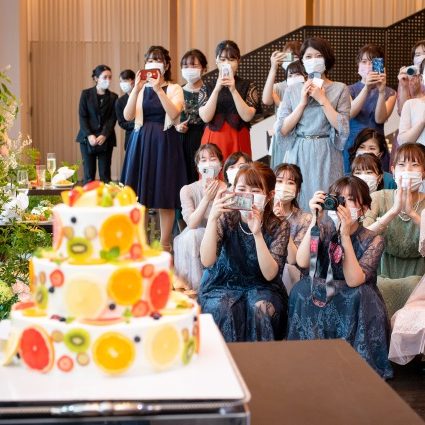 私たちは自分たちだけではなくゲストも楽しめるようなアットホームな結婚式・披露宴にしたいという思いがありました。アフターセレモニーでは、ブーケ・お菓子プルズを番号抽選で行い、ゲストも自分たちも楽しむことが出来ました。披露宴はゲストがゆっくり過ごせて、私たちもゲストと触れ合う時間を多く作りたかったので、タイトなタイムスケジュールにならないように余裕を持ったスケジュールを組んで頂きました。お陰様でゲストからの結婚式後の反響も良く、式が終わってしばらく経ってからも「本当に良い式だった」と言っていただくことが出来ました。