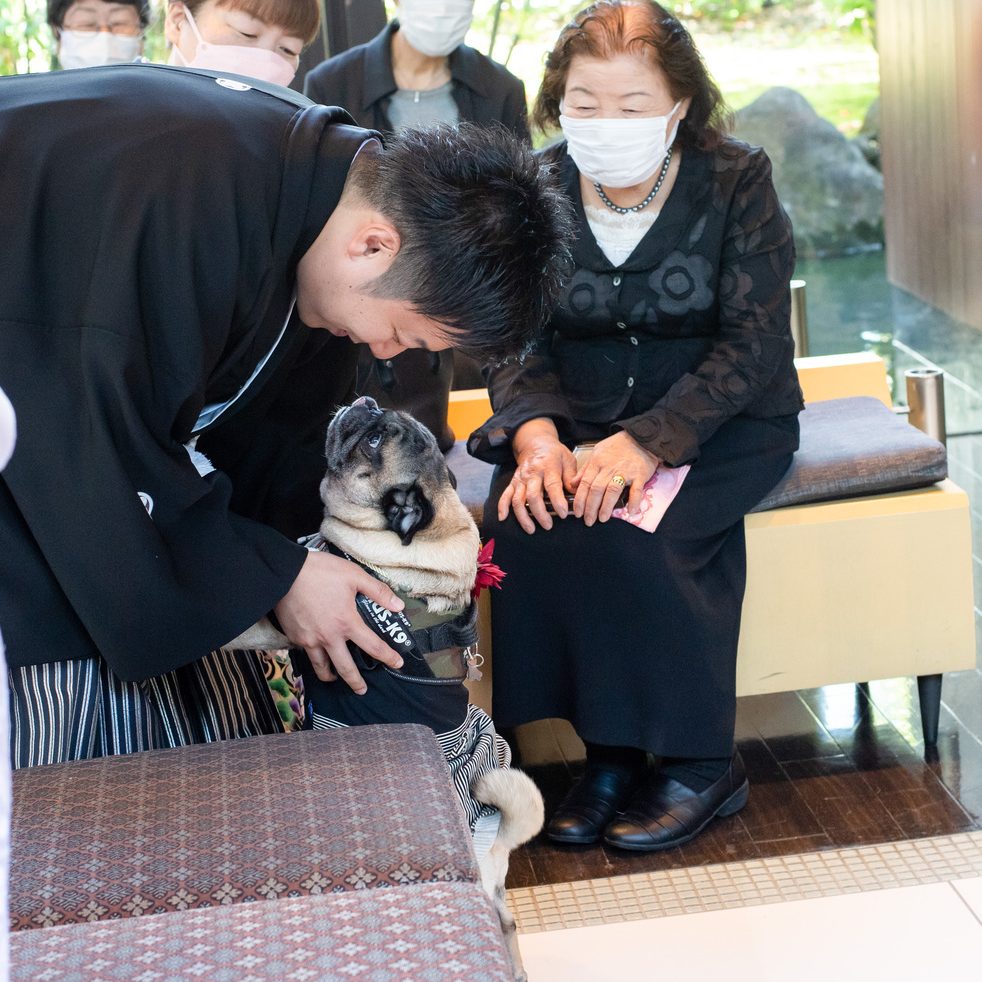 今日は、パグ3兄弟とゲストとみんなでお酒を楽しむ結婚式。
