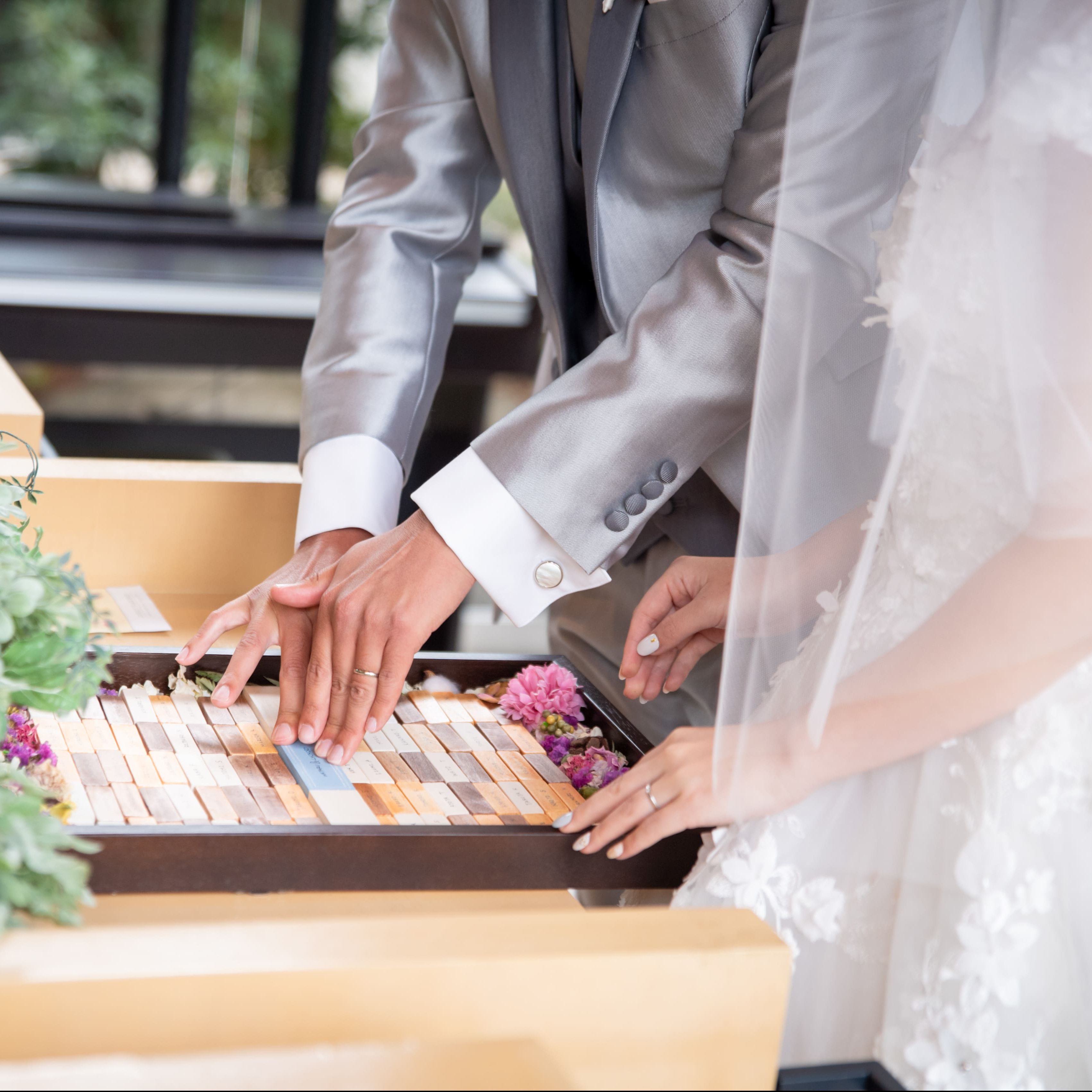 ・名前の入ったブロックを当日はめてもらうことで当日完成する結婚証明書