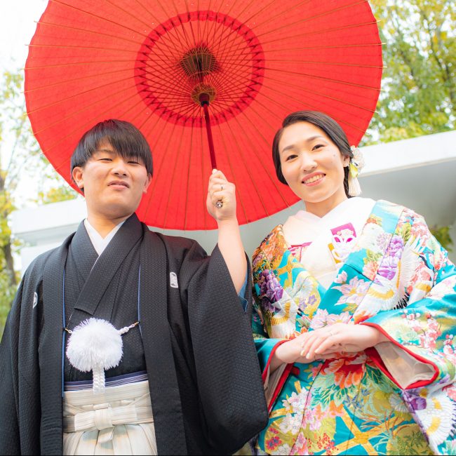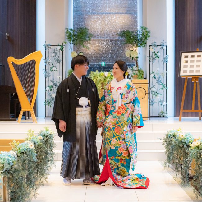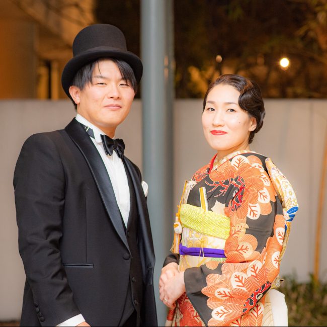 特に衣装は、純和風の色打掛+紋付袴の組み合わせと大正モダンをイメージした引き振袖+タキシードをチョイスして、他にはない組み合わせの演出ができたかなと思っています。