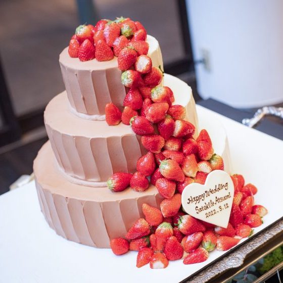 また、ウェディングケーキは、苺がたくさん欲しい!ショートケーキとチョコレートケーキ、どっちにするか決められない!という欲張りな私達のために、なだれのような苺と、ショートケーキとチョコレートケーキのコラボレーションという、素晴らしいウェディングケーキを用意してくださいました!!感激です!