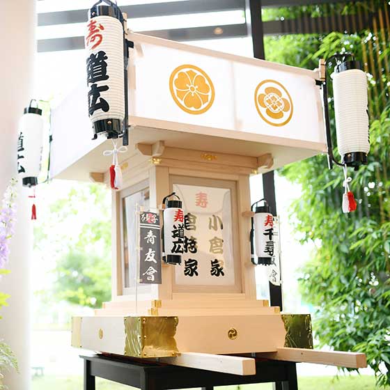 お神輿は新郎が自身で創ったものを飾り、再入場では会の方に協力いただいて