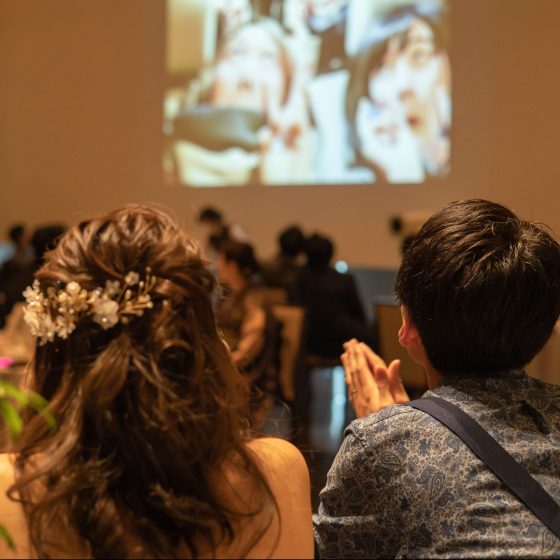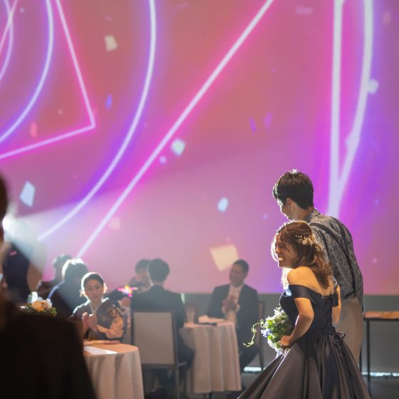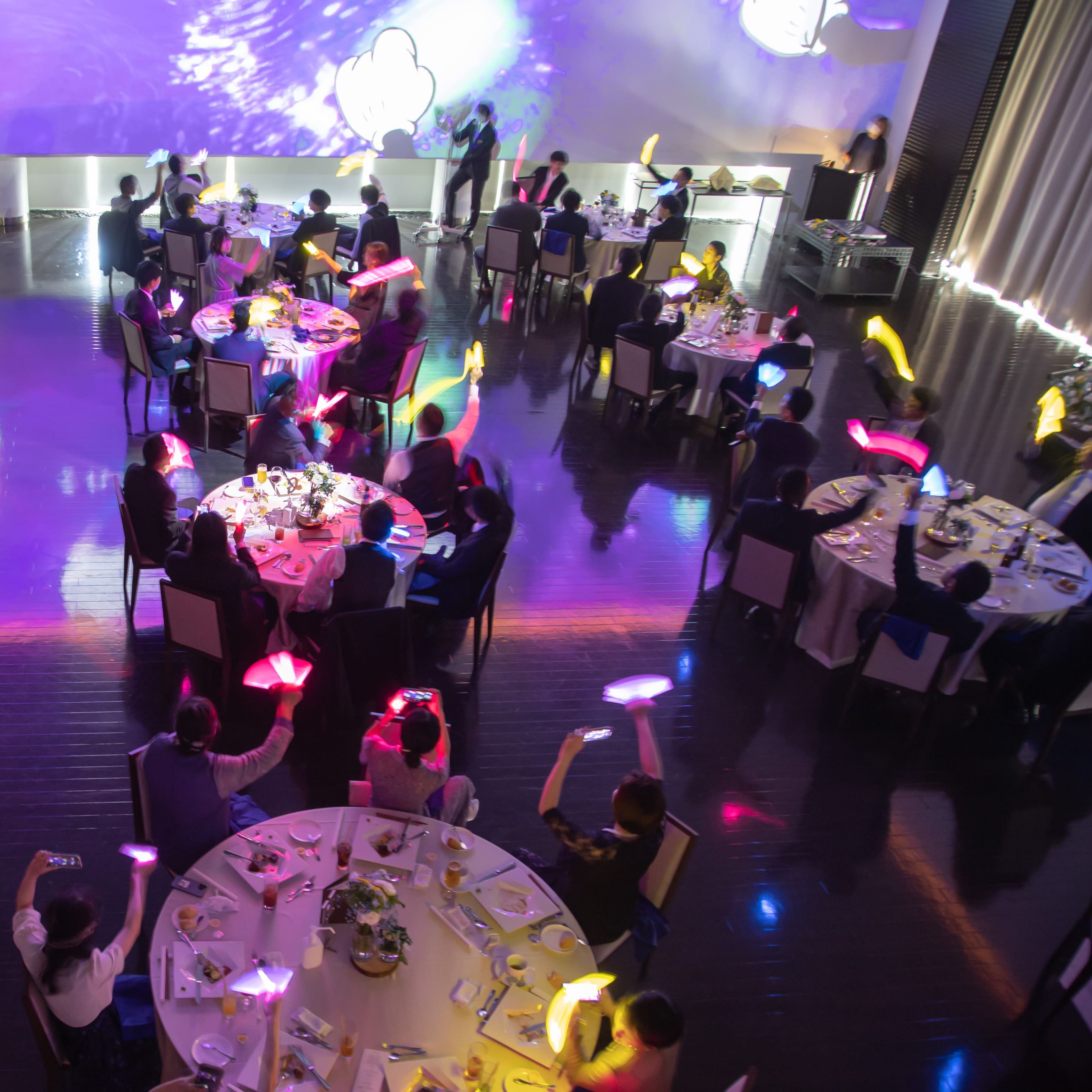 披露宴では、ドレス色当てクイズでサイリウムを使いライブ感を演出しました。