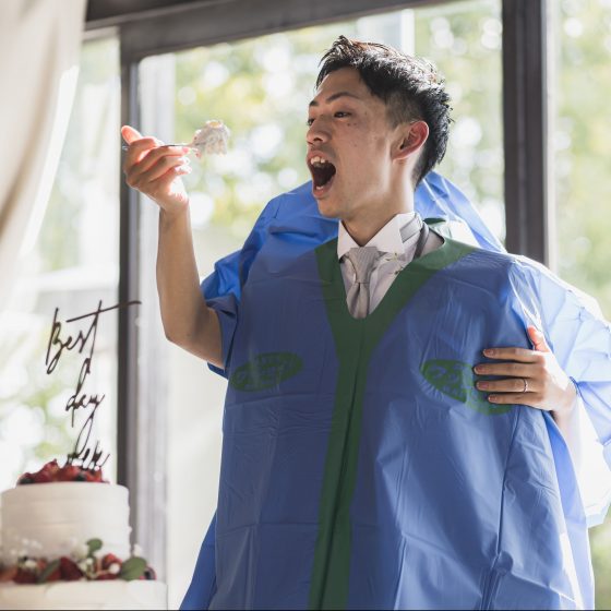 「普通じゃ嫌だ!」と思い、ファーストバイトは二人羽織でやりました笑