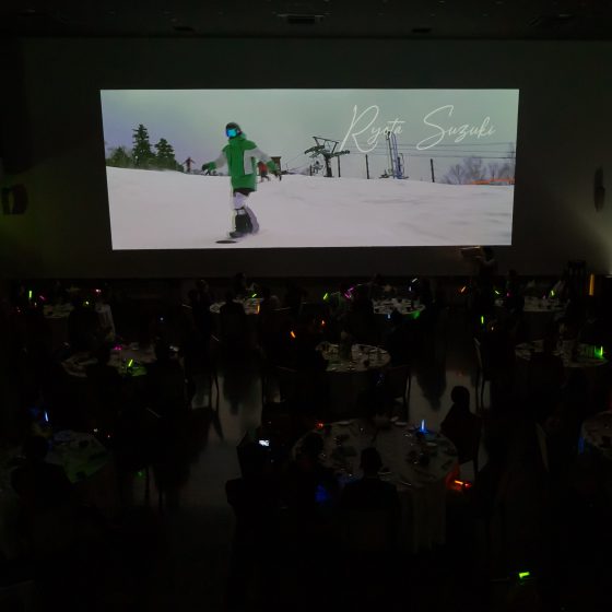 その中でも、再入場のプロジェクションマッピング映像は、結婚式を挙げると決めた時からスノーボードの映像を流したい!という気持ちがありました。