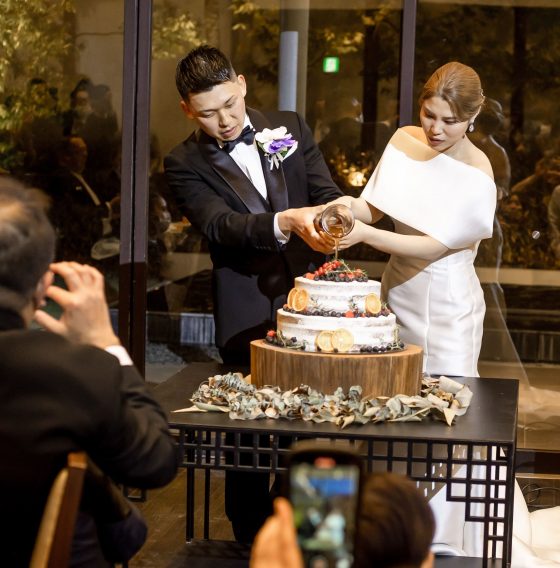 マッピングとBGMに合わせて新郎が入場し、新郎の合図で反対側のテラスから新婦が入場する形を取らせて頂きました。