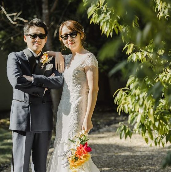 挙式後に外で写真撮影をしたり、披露宴は長テーブルにして近い距離でお食事を楽しめるようにしたりと工夫しました。