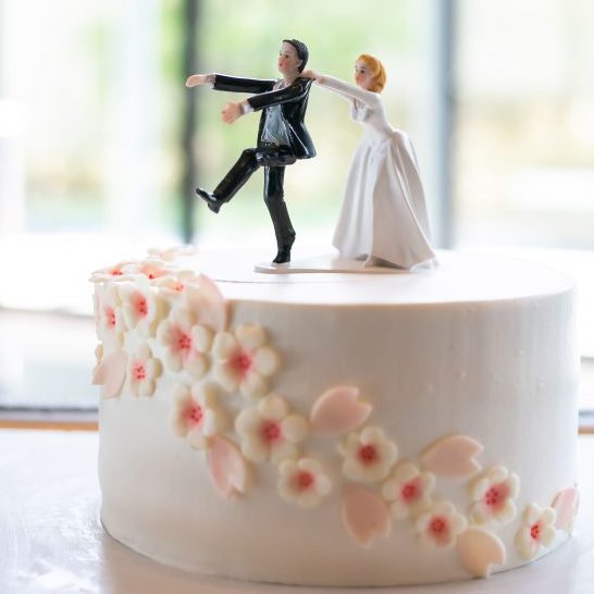 ウェディングケーキは桜モチーフにしました。