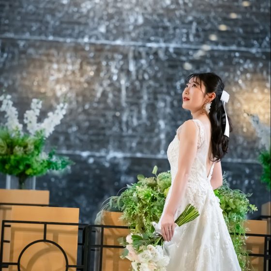 アイテムに関しては、新婦の好みであるパステルカラーを取り入れ、韓国風にアレンジしていただいた造花がこだわりです。