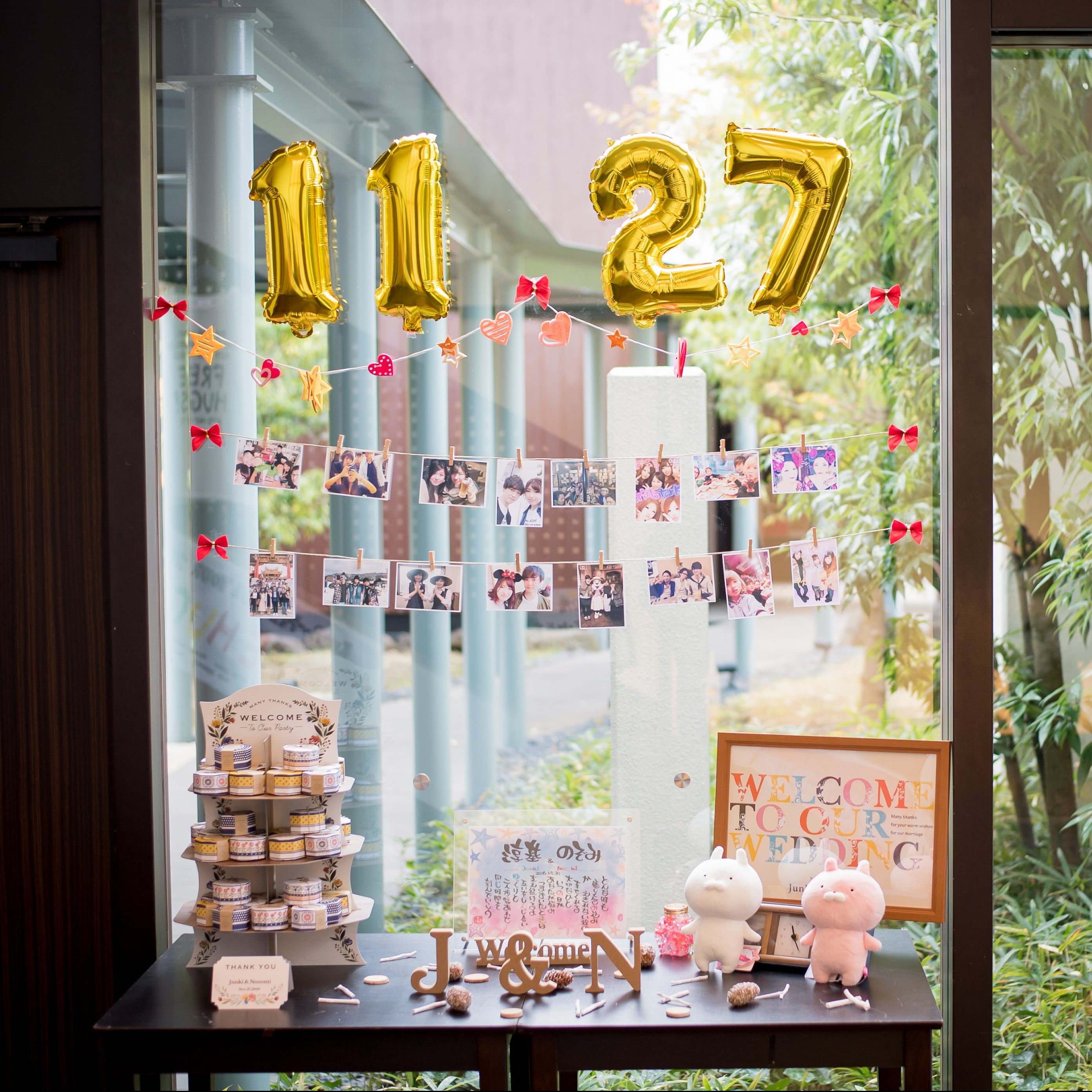 受付が終わった後に、ゲストのみんなには封筒に書いてある自分の名前を探し出してもらって席を見つける、といった参加型スタイルをこちらでも取り入れました!