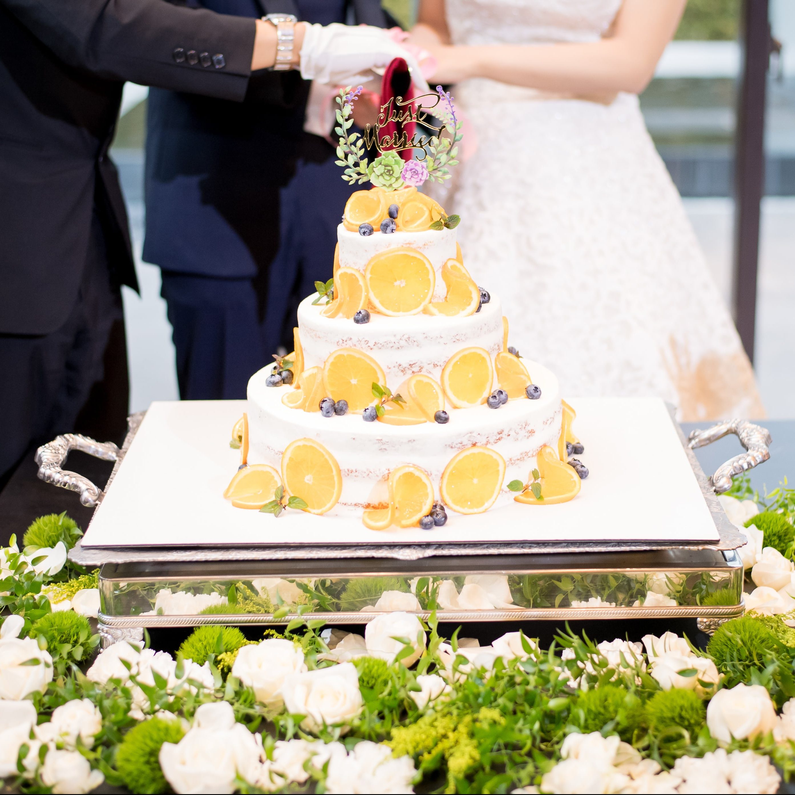 黄色が多い柑橘系を使い私たちらしいケーキに仕上げていただきました!