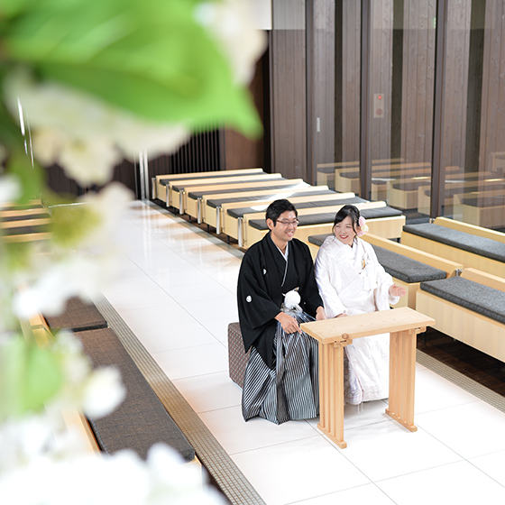 本格神前式、そしてテーマパークに遊びに来たかのように楽しんでいただけるような空間を演出。