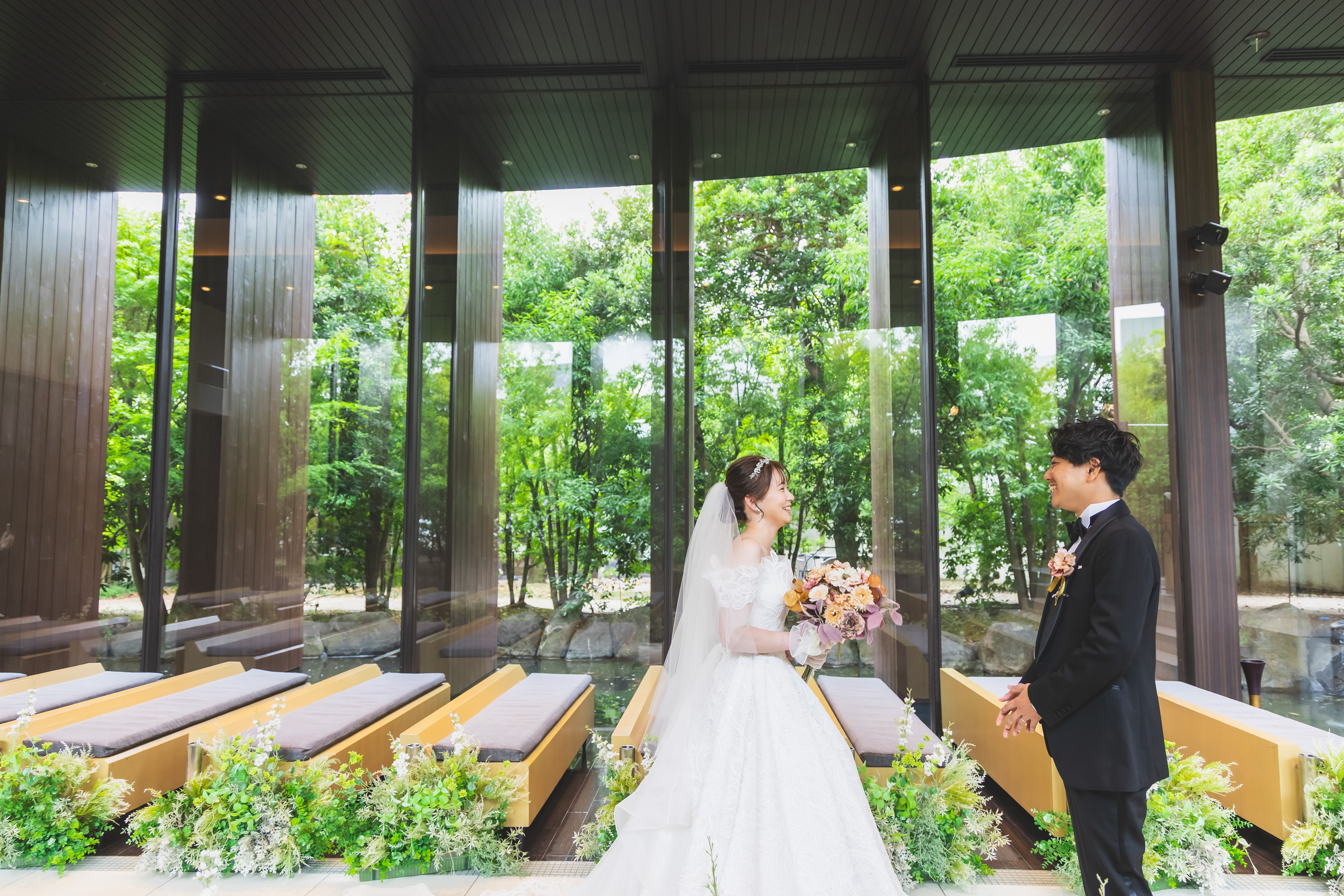 当日はおふたりのファーストミートから始まりました。対面した瞬間はおふたりとも笑顔であふれていました。