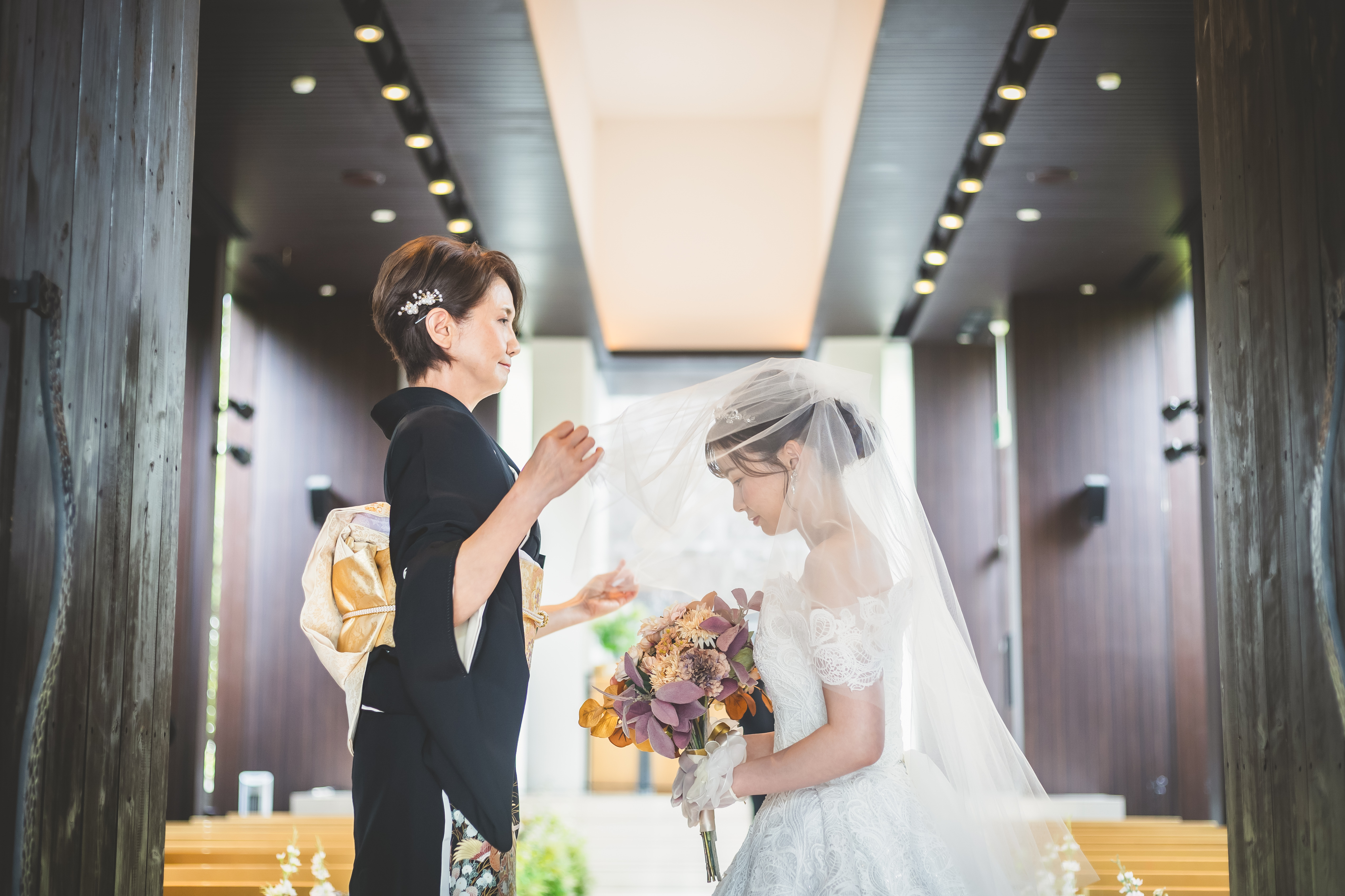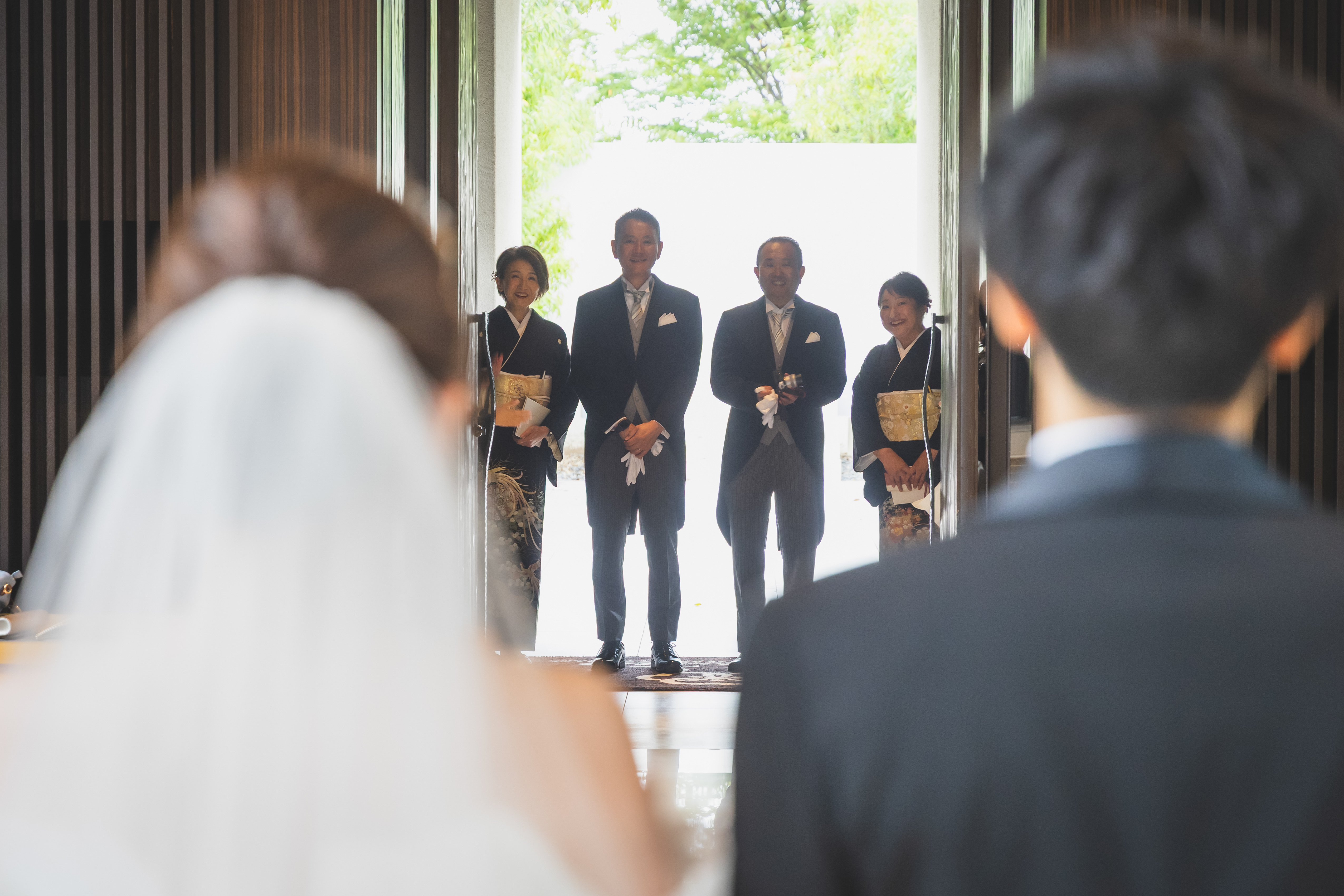 当日はおふたりの親御様にもご参加いただき、ベールダウンやエスコートの様子も撮影することができ、挙式の雰囲気も味わって頂くことができたと思います。